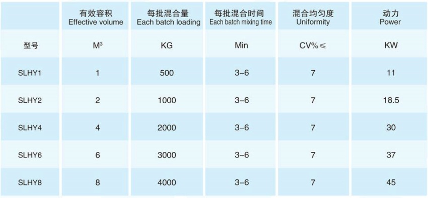 2、優(yōu)化設(shè)計(jì)的雙向螺帶轉(zhuǎn)子,混合攪拌溫和,均勻度高,CV≤7%,無(wú)偏析;