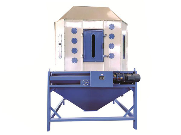SKLN系列逆流式冷卻器也有翻板式排料機構的冷卻器可供選擇,采用液壓驅動的排料機構,多用于膨化、膨脹料的冷卻。